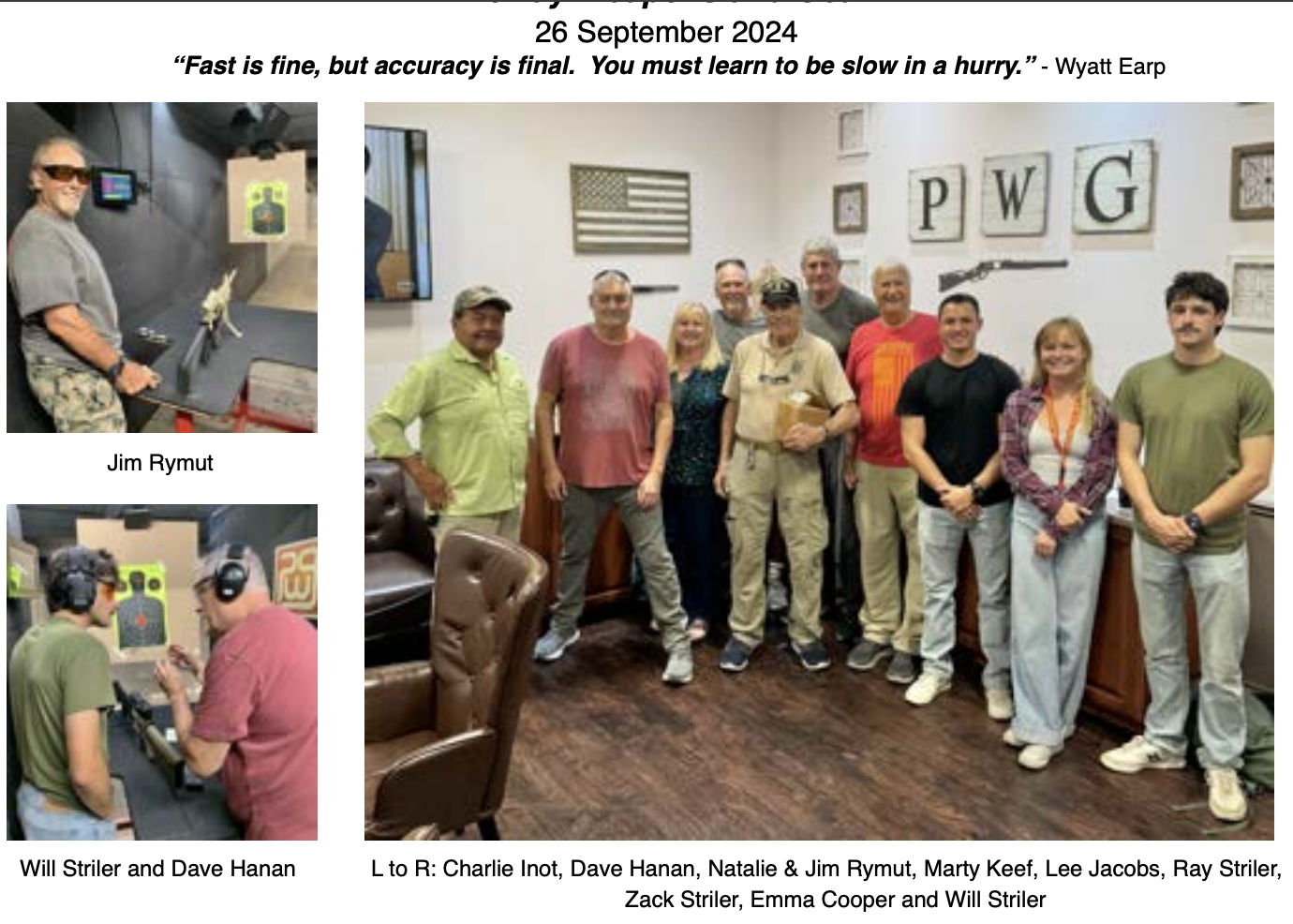 In the near future, Lee hopes to collaborate with our northerly neighbors of Chapter 78 for a firearms range day or two at the Pala Shooting Range with handguns & long guns. Date & time to be determined.